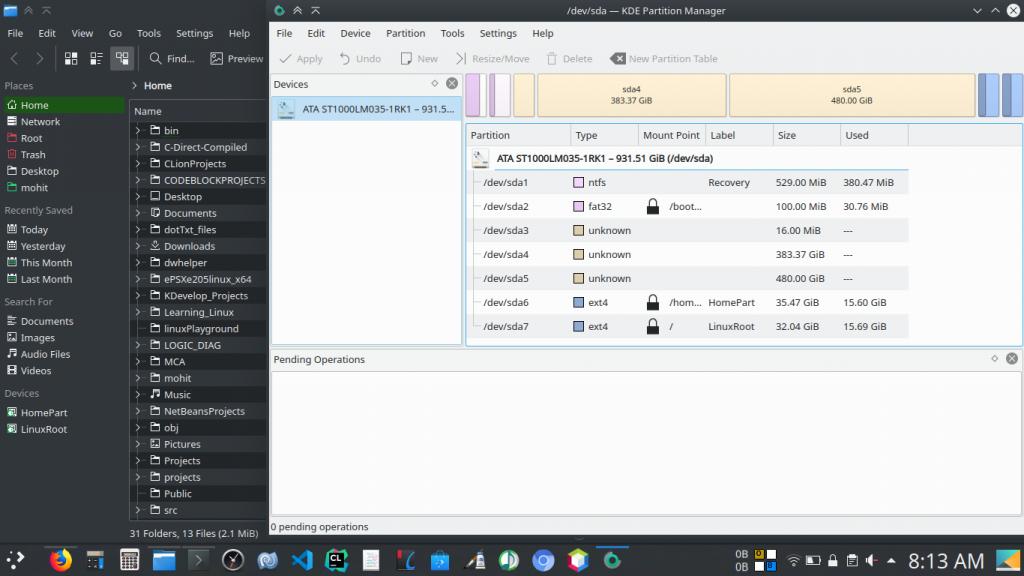 However, what the problem is neither of my C and D drives is visible to my existing Linux system. In KDE Partition manager it shows both the partition with unknown type filesystem.