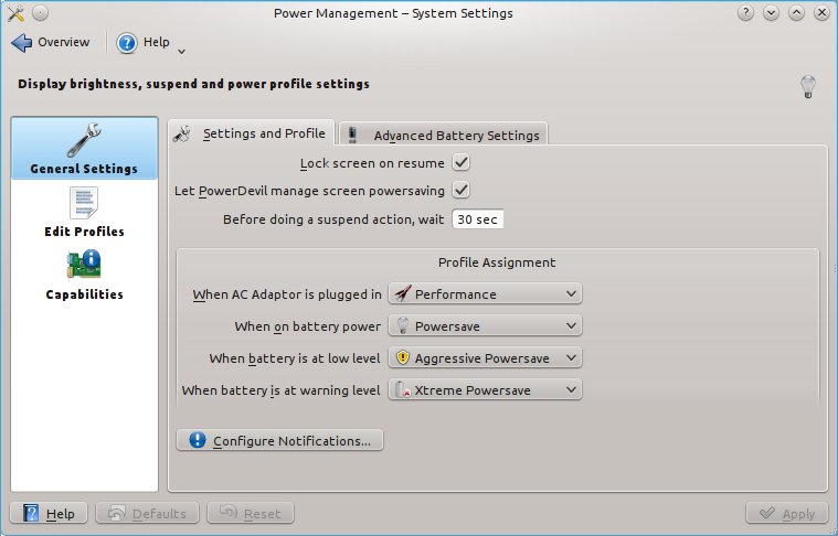What exactly does PowerDevil do and how can I control it? With Google I found out that it's a lightweight power management tool, but that doesn't help much. I found lots of information on how to install it, but no clear statement of just what it does. Power Management in System Settings has a choice to activate it or not, but I can't find any information that would help me make that choice intelligently.
