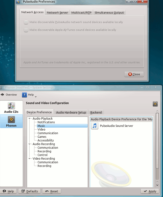 I like to stream my music to my Apple TV and/or Apple Airport It should be possible according to the various postings i read. I am using the PulseAudio sound server and have wired and wifi internet access. But in the PulseAudio Preferences dialogue box, all the network options under all the tabs are greyed out. Is there anything that i missed.