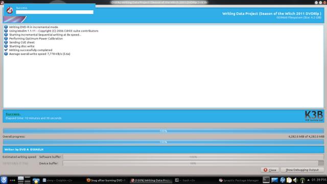 I recently came across a weird incident after burning some new data ( downloaded movies of .avi format ) on a DVD-R using k3b burning tool. As I reinserted the disc , the device notifier just did not pop up at the corner of the screen to show me the k3b project as burnt on the DVD-R. I selected New Data Project as they were PC DATA .. no converted videos / videos as such . I selected 4x speed to burn , writing mode =Auto , file system =Linux/Unix + Windows . But more amazing was the fact that the burnt projects are being instantly detected in windows xp. Or so to speak previously burnt files using cdburnerxp on a DVD-R media , are being readily recognised by Kubuntu 12.04 ( which is my OS ) at the very insert of the said DVD-R into the burner tray . Really spoilt a good no of DVD-R to resolve this issue .. but to no avail . Any suggesstion to fix this nagging bug would be highly appreciated and would relieve me from hopping to Windows Xp ( I have dual-boot system ) for simple DVD-R burning!!
