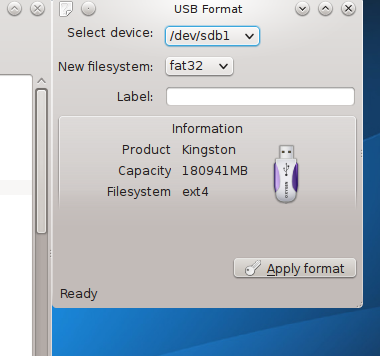 sudo mkdosfs -n 'MyUSB' -I /dev/sdc