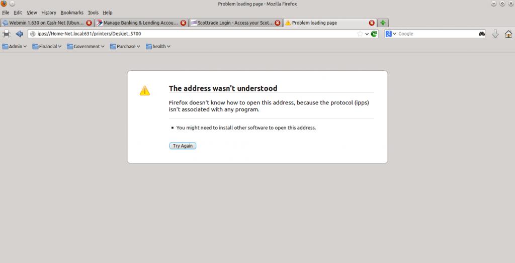 Notice the address displayed in Firefox, namely: ipps://Home-Net.local:631/printers/DeskJet_5700