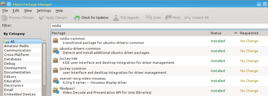 I can certainly understand what you are saying. Could you please let me know what NVIDIA card you have and what drivers you have installed. To illustrate, I used muon and entered nvidia in the search box and clicked twice on "Status" to show the installed packages that are listed in the graphic below.