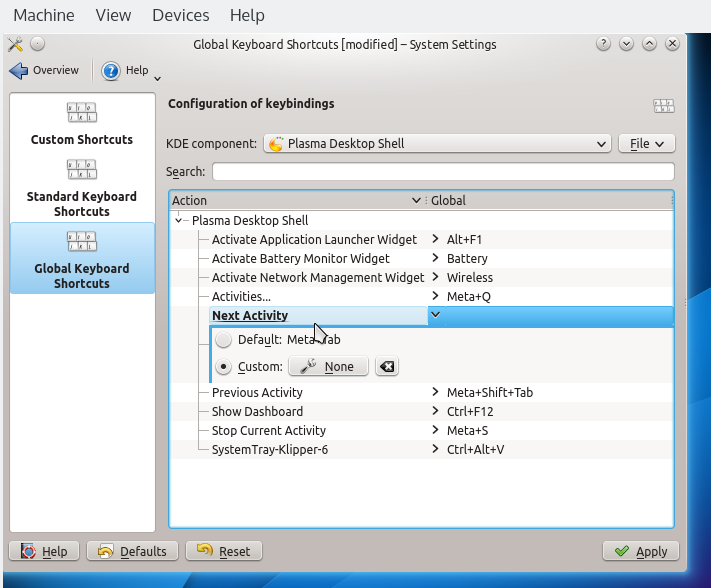 Kubuntu has a feature that I don't ever intend to use and don't like, but sometimes accidentally invoke. It's some kind of thing for multiple desktops that you can access with Meta+Tab. I have no need for such a thing, but sometimes when I try to Alt+Tab from one application to another, I accidentally hit Meta+Tab and find myself annoyed to be in another desktop that I didn't want. Is there some way to just shut off whatever this multiple desktop feature is so that I can't accidentally invoke it?