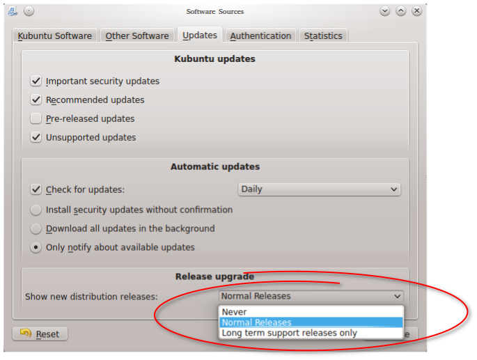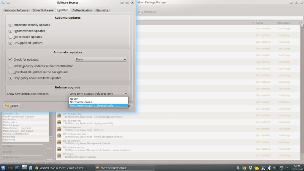 However, my laptop doesn't seem to recognize that the upgrade from 14.04 to 14.10 is possible.
