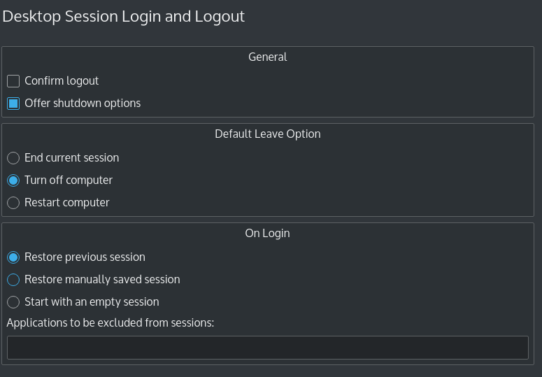 What it would do is shutdown the computer in seconds and I'd be out. No ticking timer. BOOM -- out. Now when I select LEAVE it logs out the session and brings me to a login screen. Where I must 'shut down' sort of again. I want to avoid that screen. Shut down directly from desktop.