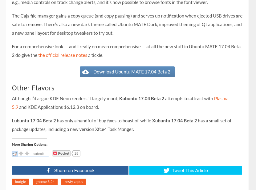 Feels a bit off to me. The article is supposed to be about Zesty Beta flavours, yet the author seems to be totally ignoring Kubuntu in favour of KDE neon, which is based on Xenial (now almost a year old). Whilst I use a lot of KDE software, I don't just use it exclusively and like to see other non-KDE software getting updated as well (ie Firefox, LibreOffice, FileZillia, etc..).