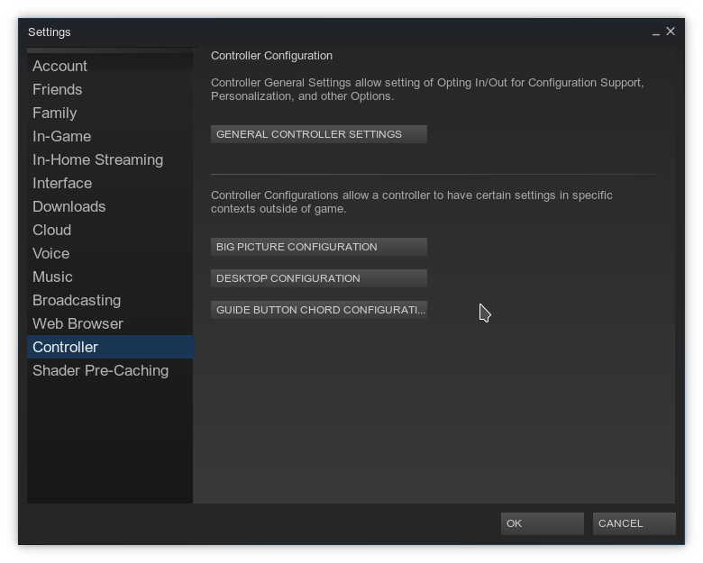 Good to know! In that case, might be beneficial to file a bug Might be worth filing a bug requesting the input configuration dialogues include Steam controller support. However, in Big Picture Mode, I believe it is solely the Steam app that is controlling the controller? I don't believe the underlying OS has anything to do with how the controller works within Steam. Maybe try to verify your controller config from within the controller settings within the steam app?
