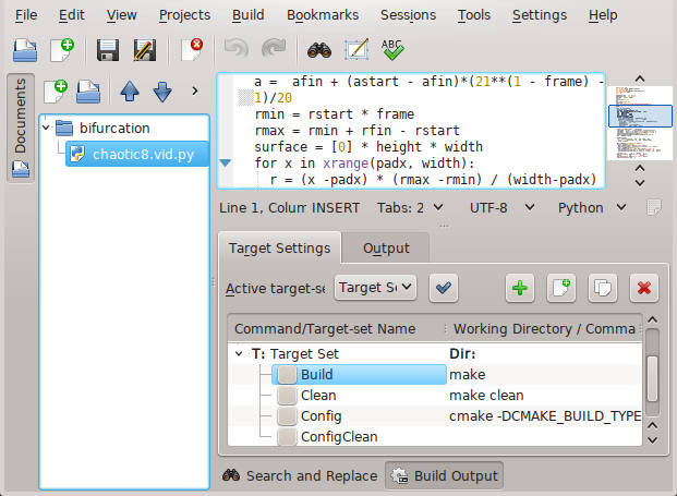Edit: Now I've found that Kate will lock up if I use the above method to run a Python script which I've accidentally forgotten to start with the hashbang line. (When the shell hits the Python script's first "import" line, it tries to execute the command-line "import" from ImageMagick. The same problem would also lock up Konsole if I ran the script from the command-line.) So to fix that I created a file called "kate-run-scripts" in "/usr/local/bin" as below, and changed Kate's "Build" line (see above) to: kate-run-scripts "%f"