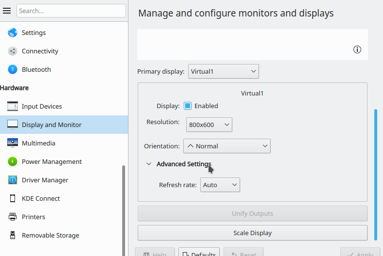 under the Advanced section in the Display and Monitor section