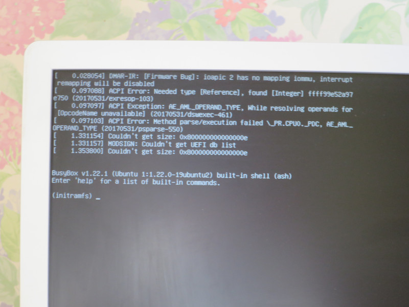 I installed Kubuntu on a Mac Mini a while ago (Mac Mini that is at least 5/6 years old) and I'm pretty sure it's Kubuntu 18.04. It was working pretty fine till recently and suddenly one day instead of booting I got that on display at boot: