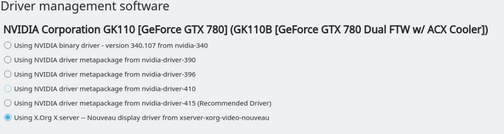 I loaded nVidia proprietary driver v415, but when I open "Driver Manager" it shows "Nouveau" being loaded?