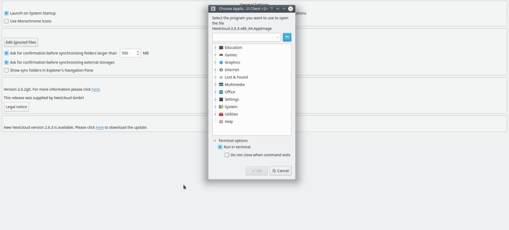 I am trying to download and install an update to my cloud storage software. It's called NextCloud version 2.6.2. The update is for version 2.6.3. The file is an .appimage and I get a dialogue window asking me to select which application to open it with. After a quick internet search I have found out that .appimage must be first downloaded and then made executable, but I can't even get as far as downloading it. Attached is a screenshot for context.