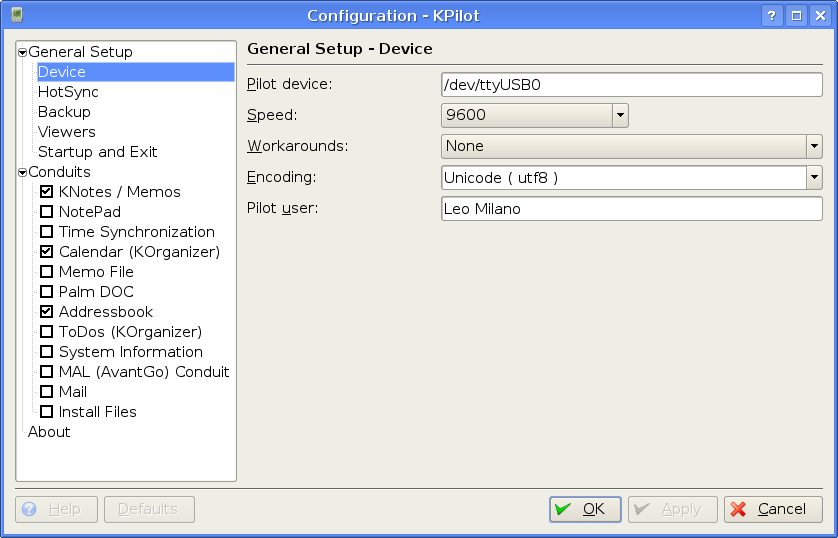 It is really weird: I can start the sync process, (kpilot running, hit the Hotsync icon on the Palm), and I see this in KPilot: