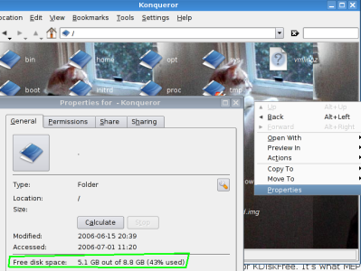 - another GUI option is kdf or KDiskFree. It's what MEPIS uses to not only show free/used disk space, but also to mount/unmount some partitions (those that don't require root privileges).