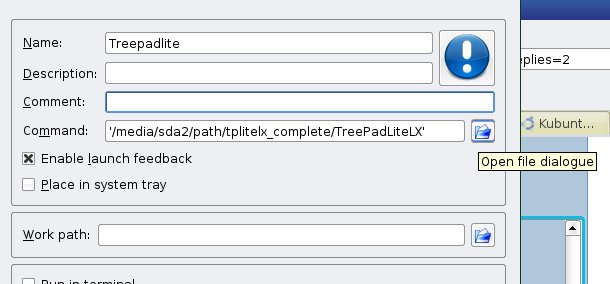 Actually, I've added it to the menu, but apparently I don't know how to enter the command to make the application run. The application's name is "treepadlite," no extension. When I double click on the file name in Konqueror, it runs. So I just entered the file name in the "command" field for the application in Menu Editor. But when I do this, clicking on the the line for the application in the menu doesn't cause it to run.