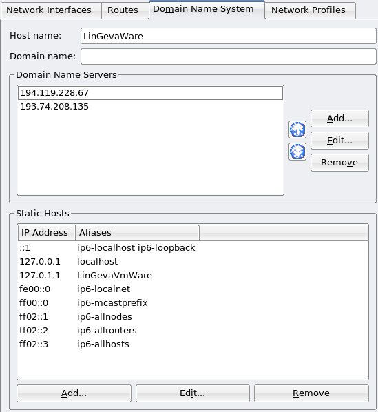 If you manually input the nameservers, I would delete those. Do you have link/activity lights? I am still researching. So far I can't find anyone else who is having a problem. Can you check your VM settings?