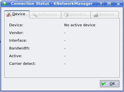 Well, next to the one given by KNetworkManager (see original post), I get the following when trying to ping to my router:
