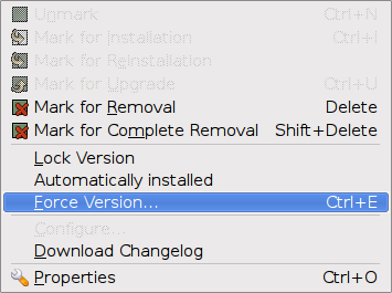 [Menu] ->[Package]->[Force Version]