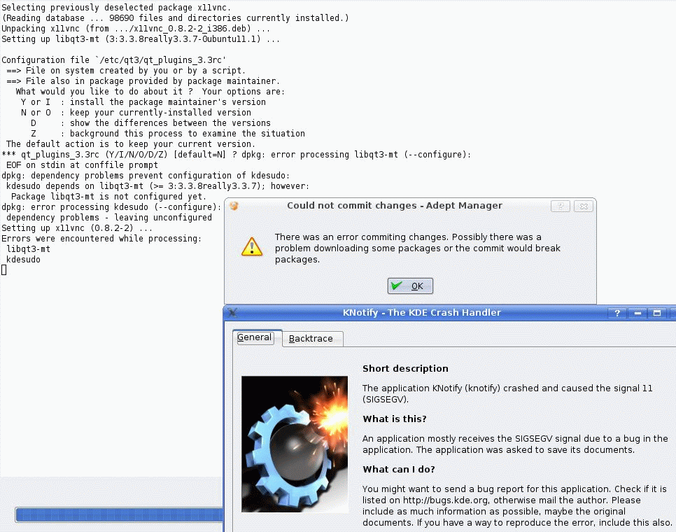 After clicking OK, Adept shows x11vnc is installed.