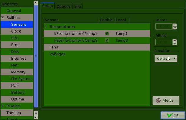 On mine, under Builtins>Sensors>Temperatures, when you expand Temperatures it shows "nVidia GPU Ambient" and "nVidia GPU Core". I put a checkmark in them, and they appear on the gkrellm display as "GPU A" and "GPU C".Originally posted by ka9qlqWell under builtins/sensors there's a "use nvclock for NVIDIA GPU temperatures" but ticking it doesn't change anything.