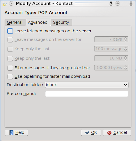 I cannot find in "kmail settings" any button to instruct the isp to remove my emails from his server after I have downloaded them