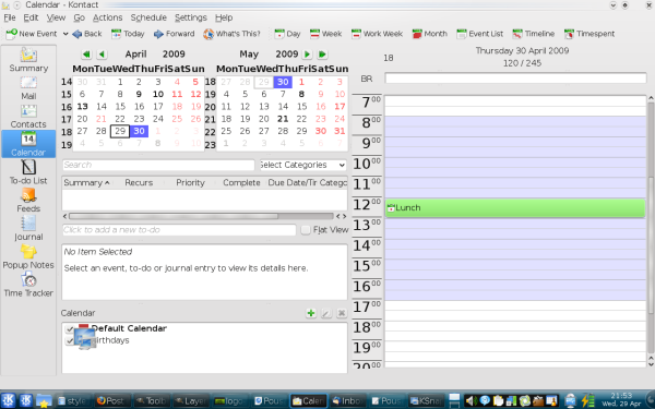 Just upgraded to 9.04, running KDE 4.2, and it appears that certain views in the Kontact Calendar module are broken.