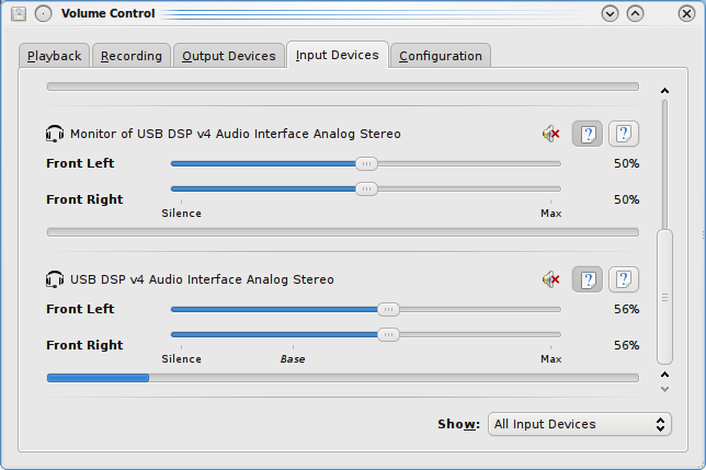 There is also a volume meter under the USB DSP v4 Audio Interface Analog Stereo which is the Plantronics USB headset. Unfortunately, this volume meter is blank.