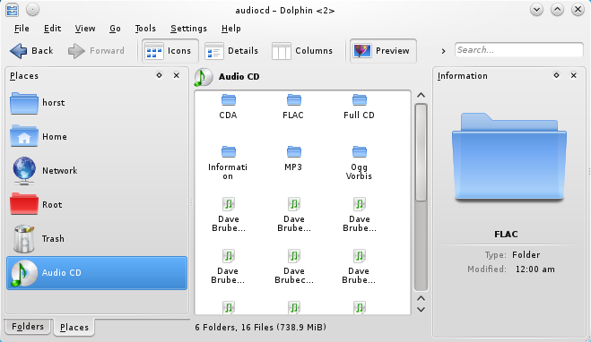 My problem in the "Folders"-panel is, that I don't have a chance to navigate to "audiocd:/". At least I don't know how.