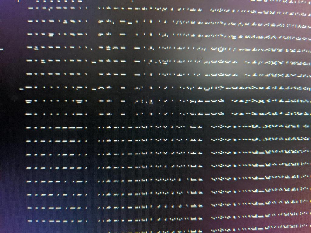 So I have created a USB Boot disk and try to start up my system with it. I get to the menu, and select the try kubuntu option, and then bad things happen. Basically a bunch of unreadable text happens, and then it just stops. I have posted pictures. I have 3 monitors, one 4k, one 1080 monitor and one 1080 tv display (display port, display port, hdmi, respectively). So I tried again but first disconnected the 4k and TV. Same thing. Changed the 1080 monitor to a different display port output on the card, same thing.