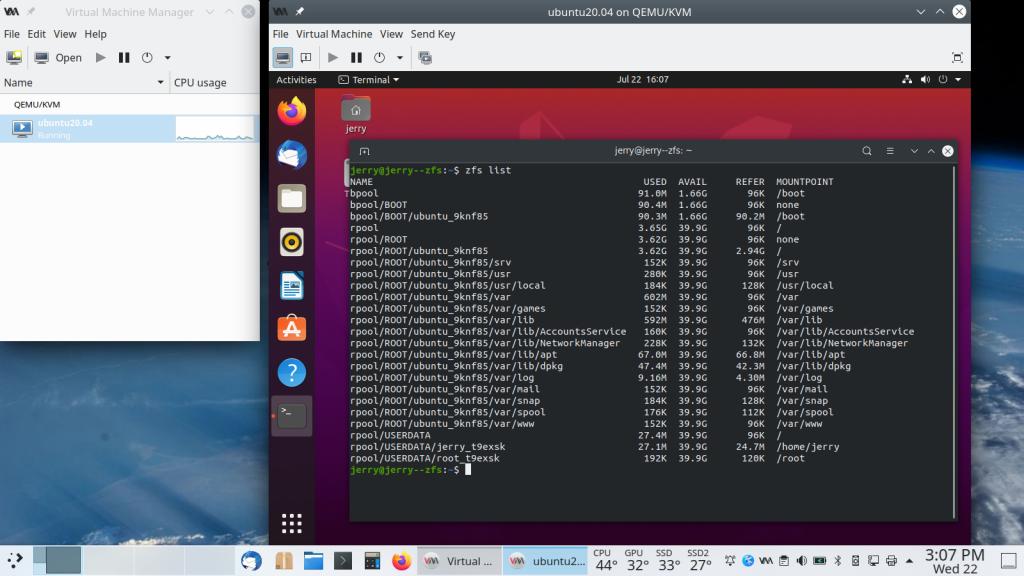 So, I decided to re-install virt-manager and install Ubuntu 20.04 as a VM using ZFS as the rfs and then issue