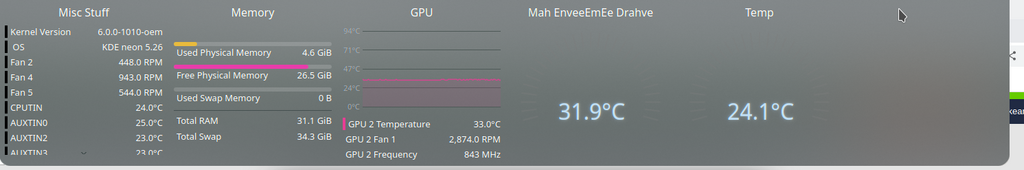 I found another fork(?) of Thermal Monitor here: https://gitlab.com/agurenko/plasma-a...hermal-monitor that is still being maintained, although it is not packaged up so you would have to install it as per the instructions provided. I haven't tried it as it still requires the ksysguardd but I noticed in the code that they had added NVMe support through the nvme-cli package which the existing version did not have.