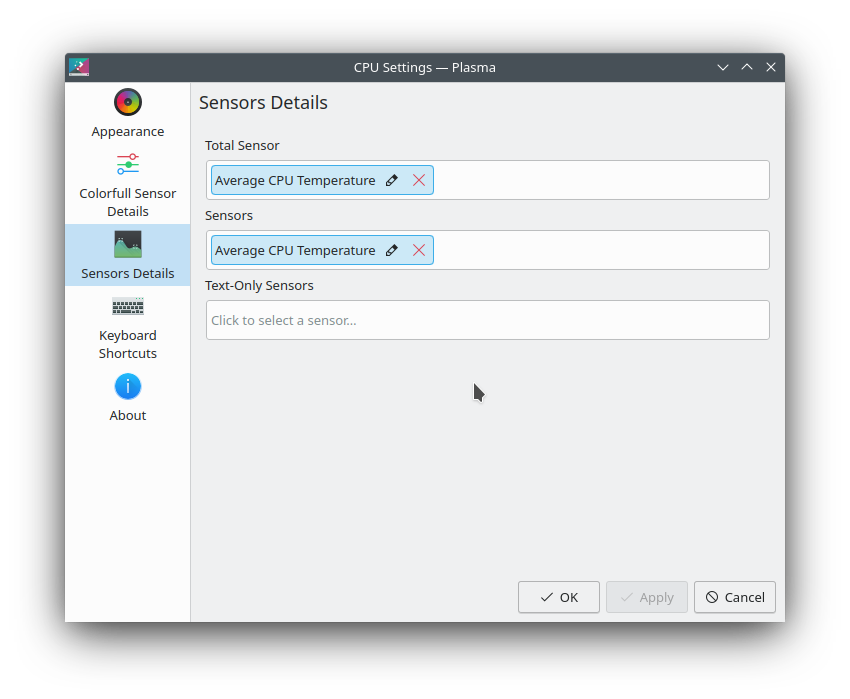 The second "difficulty" (more of an annoyance) is that the width of the System Monitor Sensor plasmoid changes when the numbers change - the more plasmoids with temperatures you have side by side the more often they move slightly. This should be no problem with a fixed width font, but I guess most people (including me) use variable fonts for their GUIs.