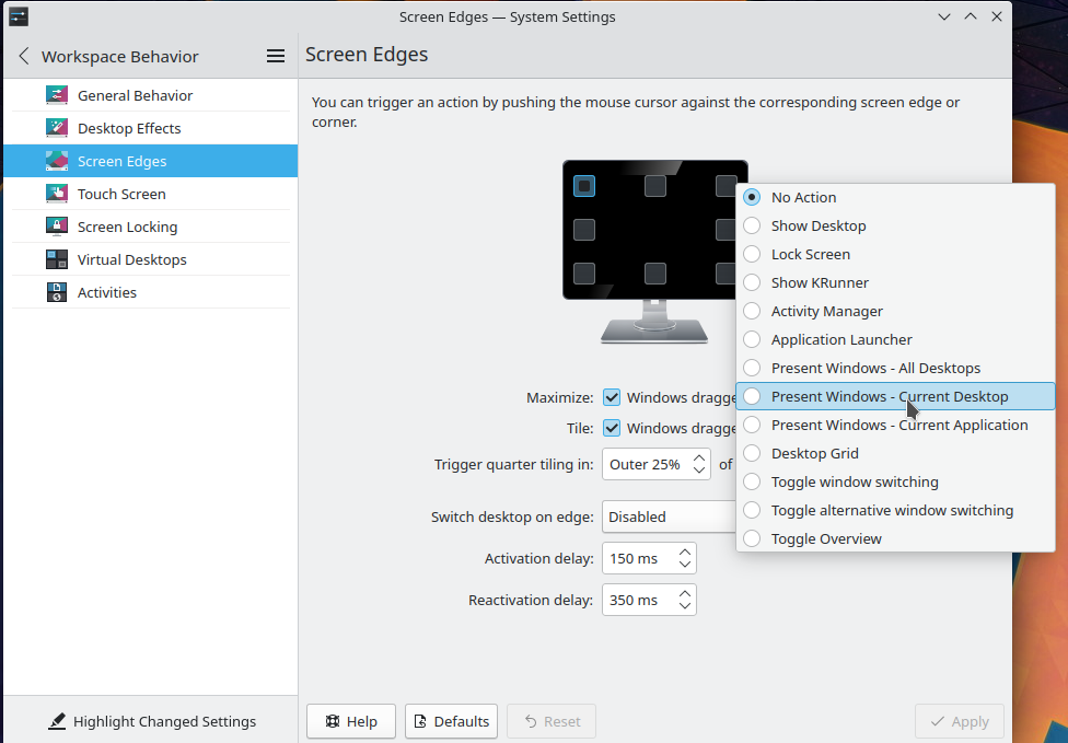 so. What do I install (package) the deals specifically with screen edges