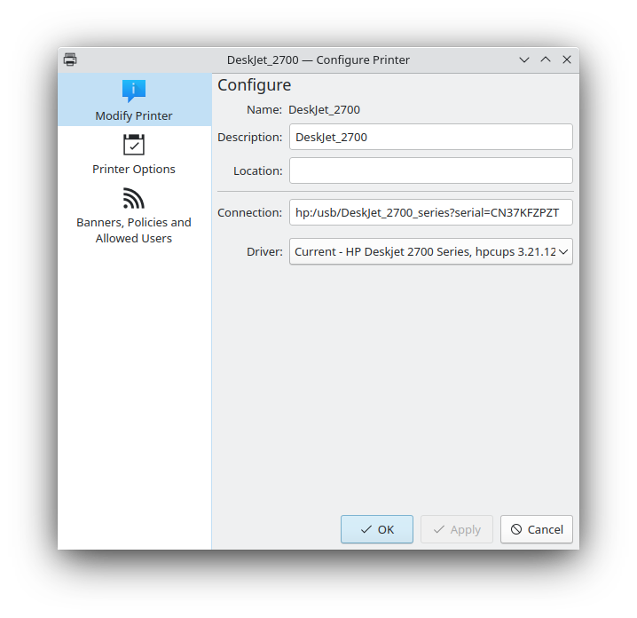I feel this must be solvable! It is not some advanced printer, and my hplip version does 'line up.'
