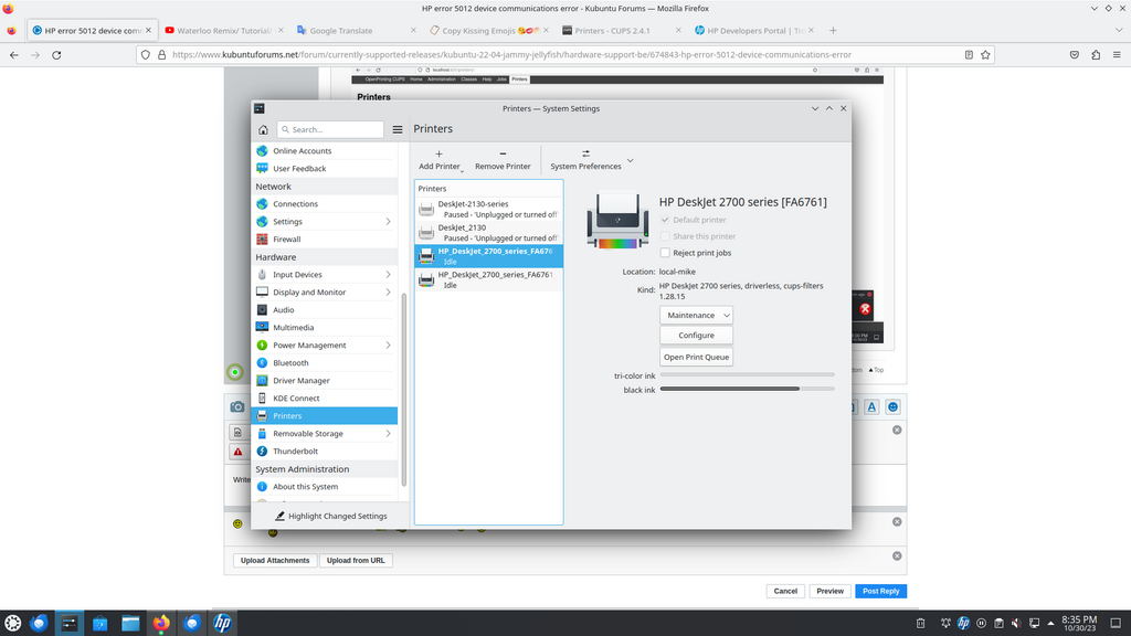 But then, hplip tells me: Device Communications Error 5012.