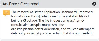 But if anyone knows how I can get those "Better" application launchers back, I would appreciate your tips. Right clicking and installing them does not work. Also, if I install one of the ones that does work and then right click on the Kubuntu Start icon and choose "Show Alternatives," I must choose one of the launchers that works. If I choose either of the "Better" ones, the Kububuntu Start button turns back into just an icon that shows that error message if clicked.