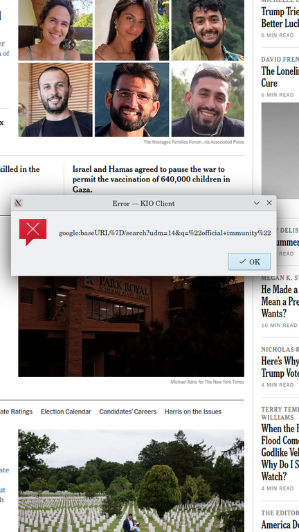 I'm getting two pop-ups when trying to search, and I've never seen them before. I've tried researching the 2nd pop-up message, but I've not found anything I can understand. Screenshots annexed.