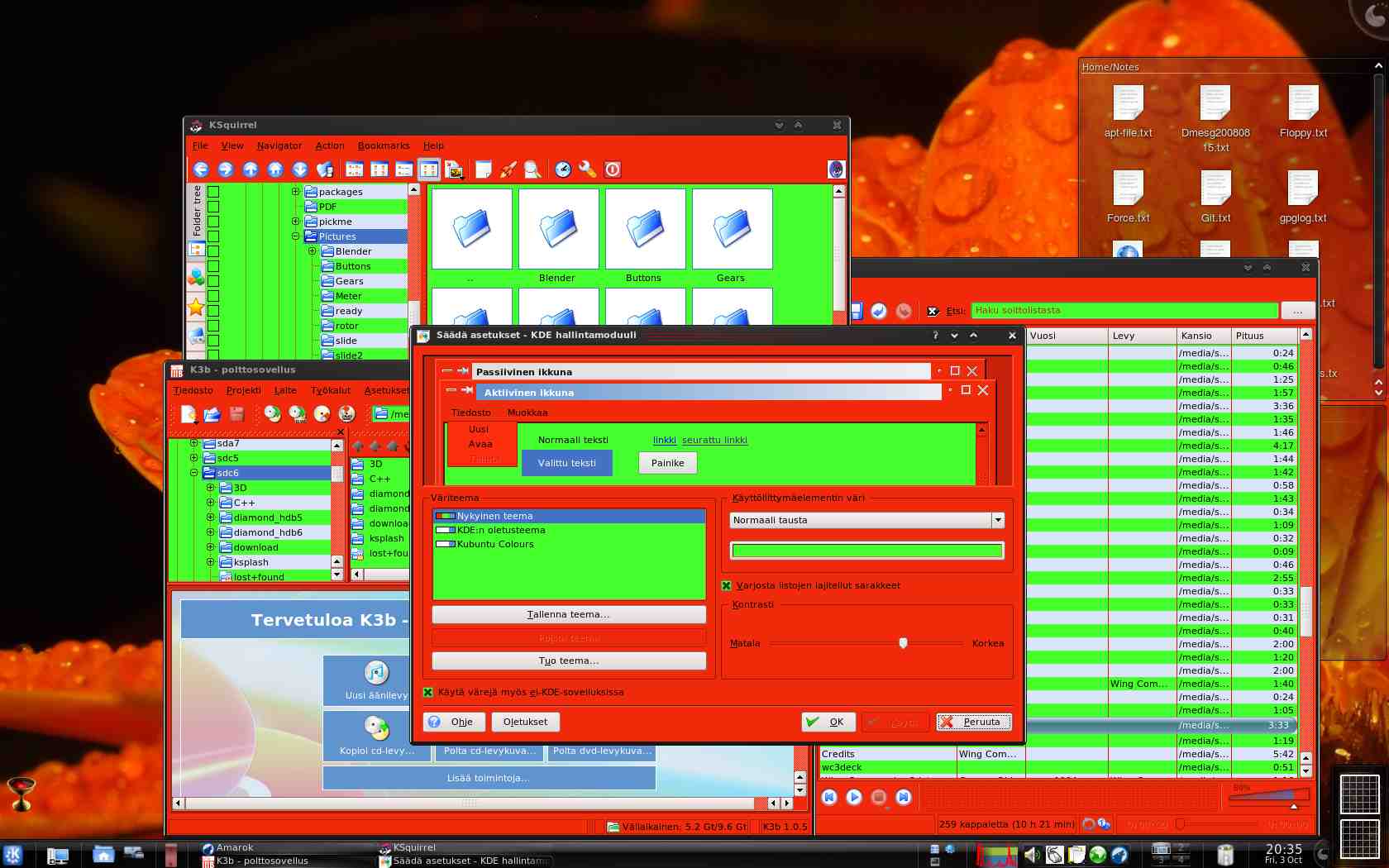 - to find another program which could do the color scheme change. i found a program called qtconfig-qt3, but amarok's and k3b's colors didn't change.