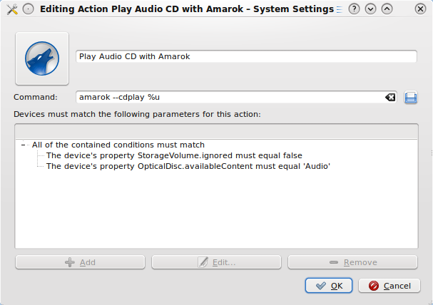 My Sansa e280 MP3 player works still with Amarok. No problems. Amarok plays my music CDs. No problem. Amarok still won't launch when selected via the Device Notifier with a music CD inserted. Oh well.