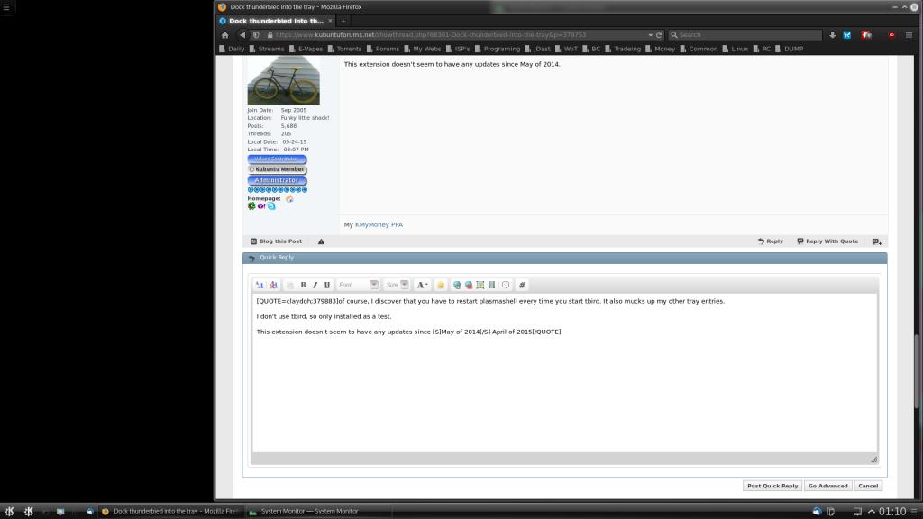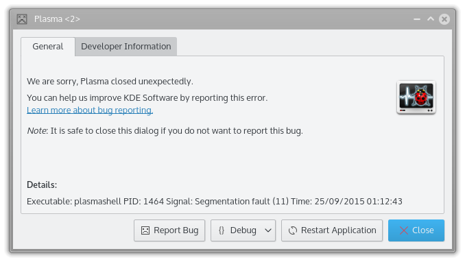 Plasma crashes, I don't have many, but that tbird extension sure messed up my systray.