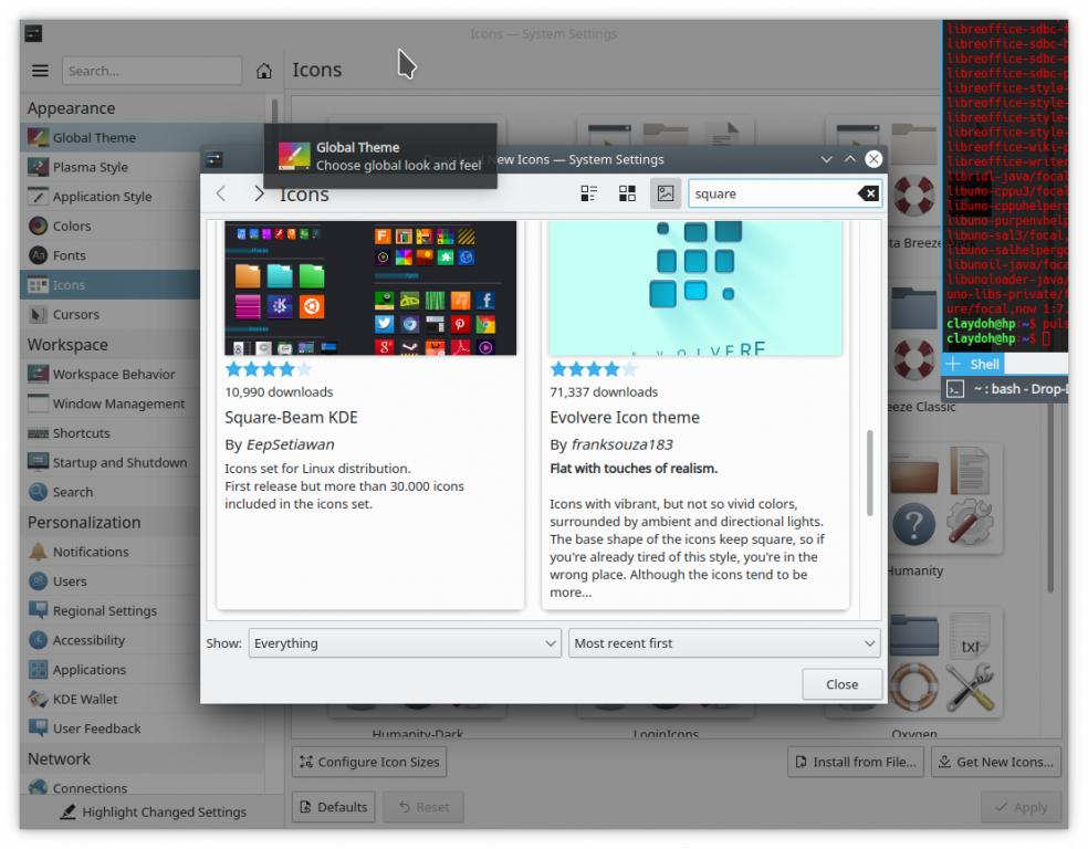 HOWEVER, unless this is a different icon theme, the Square Beam icons can very easily be found and installed via the 'Get New Icons' button in System Settings.