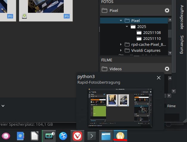 The application itself is also suddenly called "Python 3 Rapid-Photoübertragung":