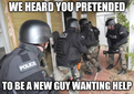 1) Lose the big, yellow and red warning on "Help the New Guy." I KNOW I'm not allowed to post new threads there, nor do I want to, but I've seen the warning already! I don't need to see it every time I go there. Although my skills have really declined in the recent past, for reasons I couldn't control, on the rare occasions when I feel I might be able to contribute something useful to a new user, I'm met with that big glaring warning. How about having a user acknowledge it, once, then make it go bye-bye?