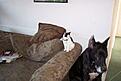 That's her big brother, Freddie, whom she adored. He and his [real, biological] sister, Queenie, taught Joy that she's really a Great Dane trapped in a 10 pound cat body.