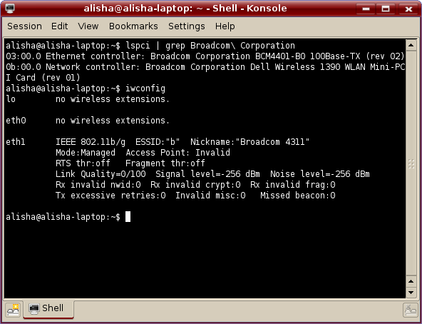 0b:00.0 Network controller: Broadcom Corporation Dell Wireless 1390 WLAN Mini-PCI Card (rev 01)
